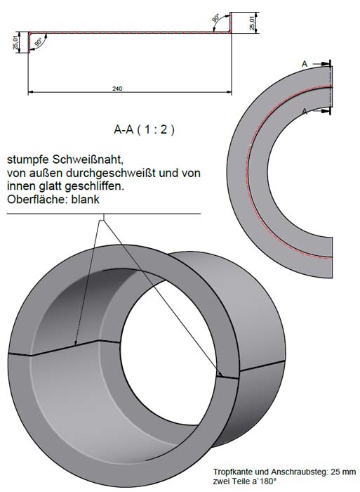 Alle gerundeten Fensterbänke werden mit einer 25iger Tropfkante und mit einem Anschraubsteg von 25 mm Höhe in allen gewünschten Oberflächen geliefert.
